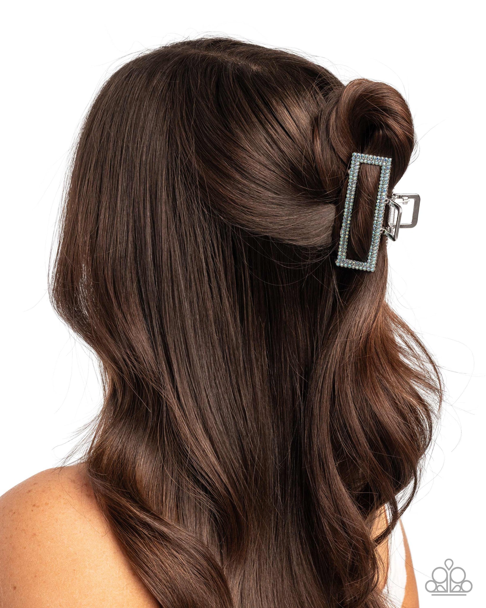 Featuring layered blue iridescent rhinestones, a polished silver claw clip holds the hair away from the face for an on-the-go chic-inspired display. Clip measures approximately 1 1/2" in length and 2 3/4" in width. Due to its prismatic palette, color may vary.